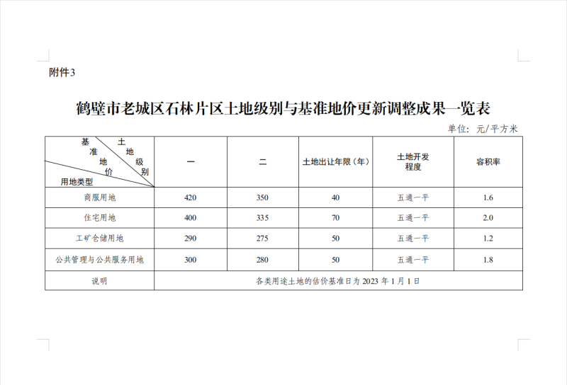 3.鹤壁市本级老城区石林片区各类各级土地基准地价表