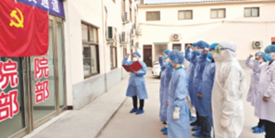 党员铁军疫情防控阻击队队员重温入党誓词。